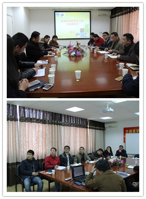 为全面了解学院学生工作实际,加强辅导员队伍建设,119上午党委副书记副校长王海威带领学生处和团委的负责同志,走访外国语学院,专题调研学生工作。外国语学院党委书记朱耀斌院长尚新出席调研会。