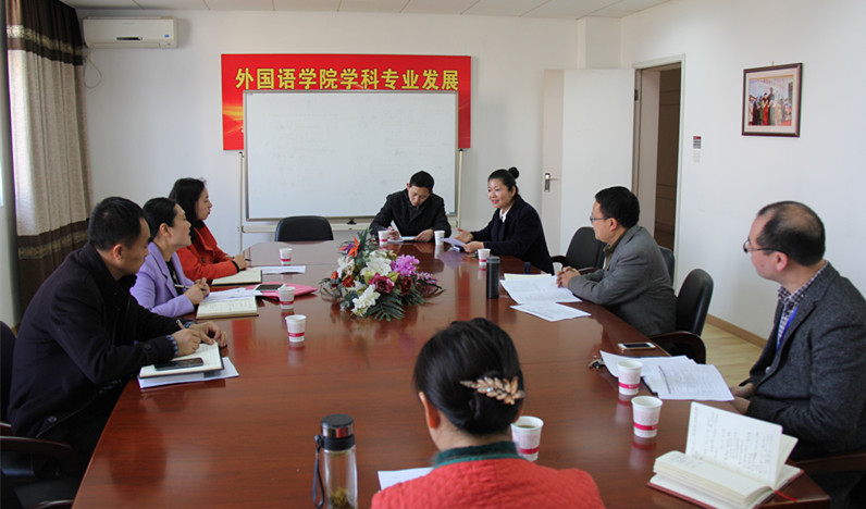 March 29,2016 morning,Deputy Director of Academic Affairs Zhao Wanying and his party came to College of Foreign Languages on innovation togive guidance on entrepreneurship projects, academic competitions and researchwork. Professor JiangLin, vice president of the College of Foreign Languages, deputy party secretaryMadam Qian Minfang and competition instructors attended the meeting. First, Professor Jiang Lin on behalf of the collegewelcomed the arrival of the Deputy Director Zhao Wanying. Subsequently, theparticipating teachers talked about their participation in competitions andother activities. DeputyDirector Zhao Wanying and his party listened carefully and recorded theactivities of teachers in the specific problems encountered in the process, andpatiently answered their questions.