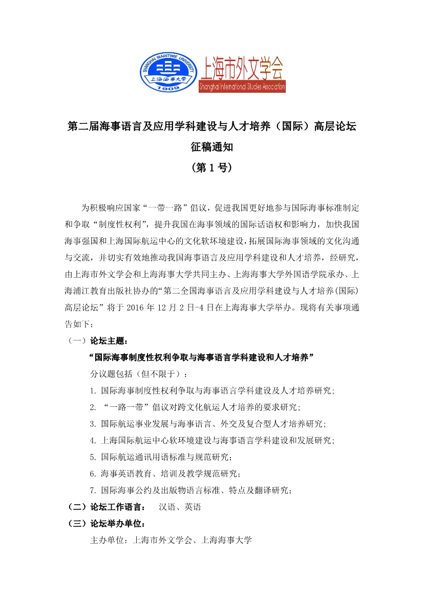 第二届海事语言及应用学科建设与人才培养(国际)高层论坛通知