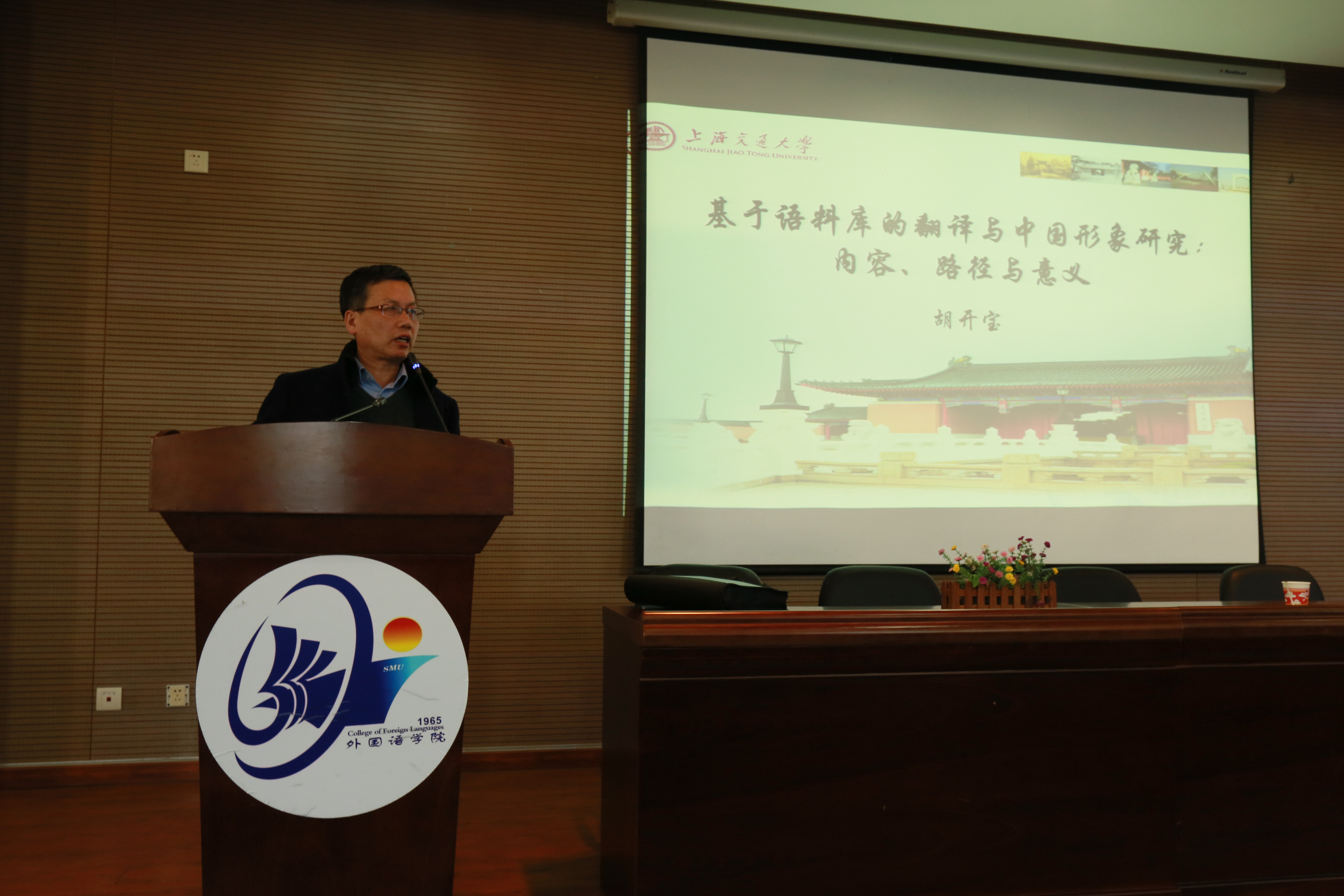 On March 15th, Prof. Hu Kaibao from Shanghai Jiao Tong University was invited to give a lecture about research on translation and Chinese image on the basis of corpus.