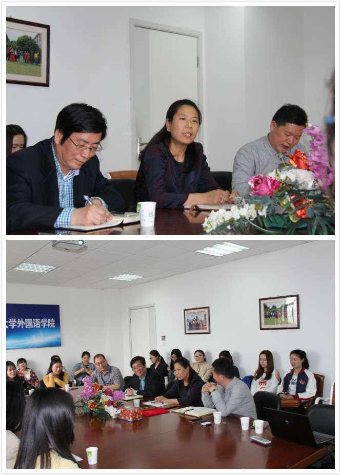 2017年4月20日下午,外国语学院召开了外语职业发展座谈会暨校友导师聘任仪式。外国语学院院长尚新、院党委书记朱耀斌等出席本次会议,近35位学生代表参加了本次会议,会议由尚新院长主持。