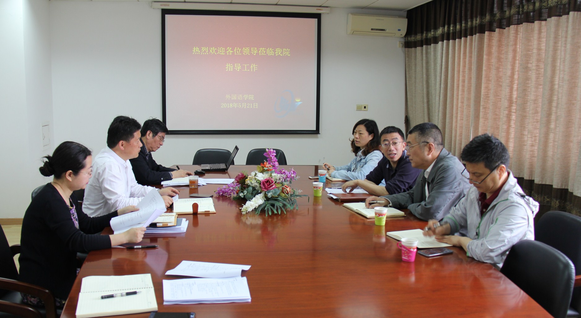 5月21日上午,副校长杨万枫、施欣及人事处处长黄维忠、教务处副处长安燕到外国语学院调研指导工作。外国语学院院长尚新、党委书记朱耀斌、副院长郭海霞等参加了会议。