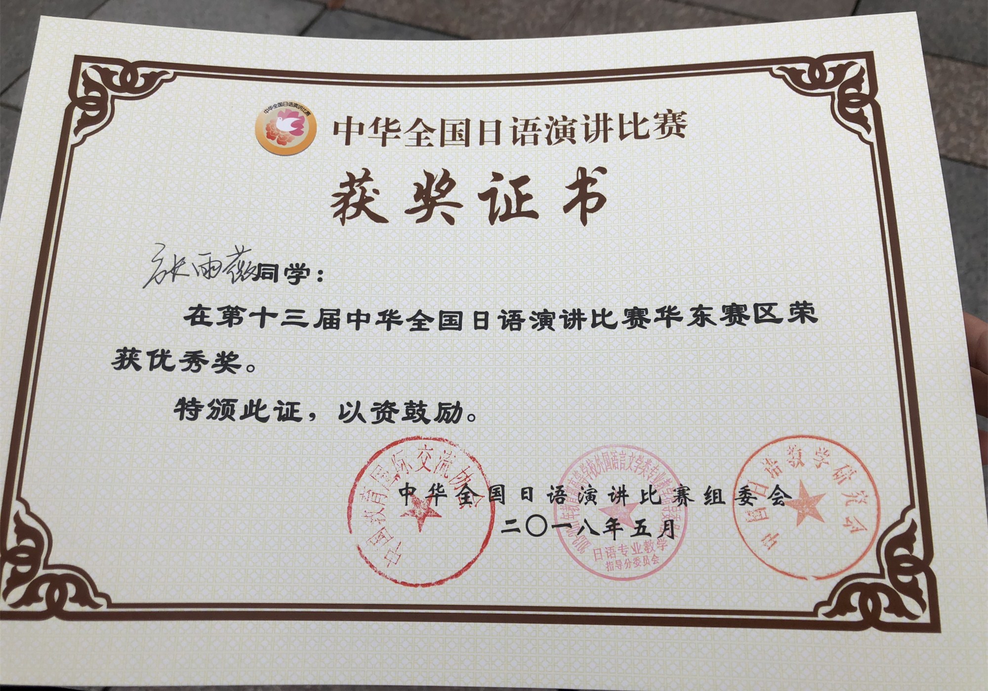 日语151的张雨薇同学代表我校参赛,这是我校事隔十来年后再度参赛。张雨薇先以独特的视角、细腻的个人体验在50多个初审的视频中脱颖而出,获得参赛资格。在正式比赛过程中,面对强劲的对手,张雨薇也表现得非常沉稳,继续以独到的视角的演讲内容获得好评,最后获优秀奖。