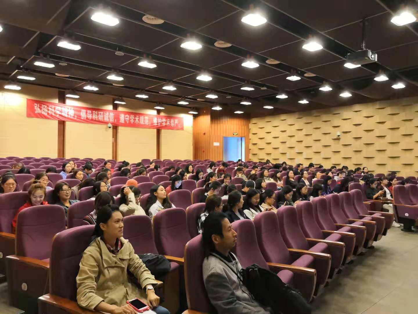 10月15日,2018年全国科学道德和学风建设宣讲教育报告会实况直播在我校泰山科研楼报告厅举行,外国语学院2018级全体研究生新生收看了此次报告会。