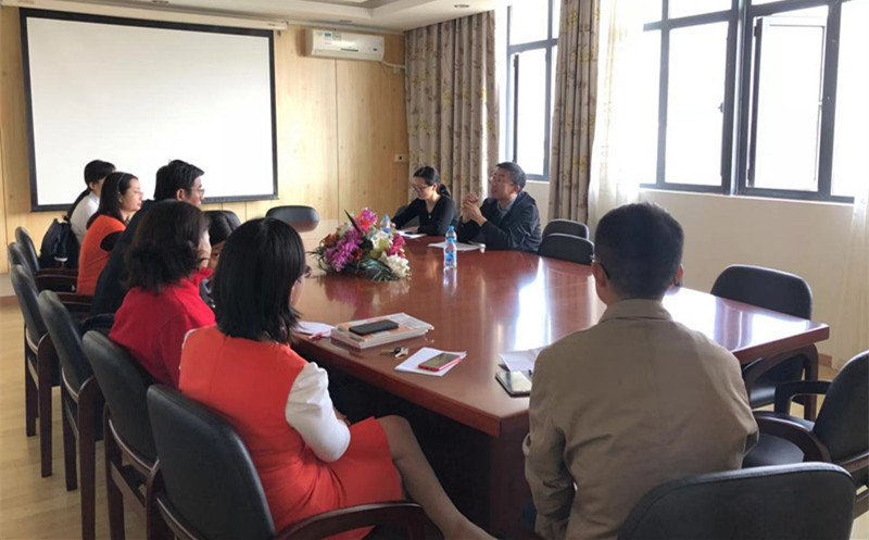 20181031日下午,上海海事大学副校长施欣与教务处陈炎老师一行到访外国语学院,调研我校大学英语教学情况,并在学院515室展开座谈。外国语学院党委书记朱耀斌、教学副院长郭海霞、院长助理佟和龙、大学英语教学部主任朱晓玲以及教师代表吴小琴、宋鹰、韩鑫、李谷慧等出席座谈会。