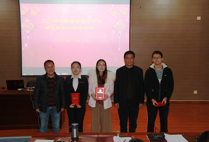在我校研究生创新基地项目的大力支持下,20181212日下午,外国语学院第十届“文心学术论坛”在外国语学院一楼报告厅、外语楼215室和109室分专业成功举办。外国语学院领导、各学位点负责人、导师及全体研究生参加了本次论坛活动,论坛由研究生教学副院长何绍斌主持。