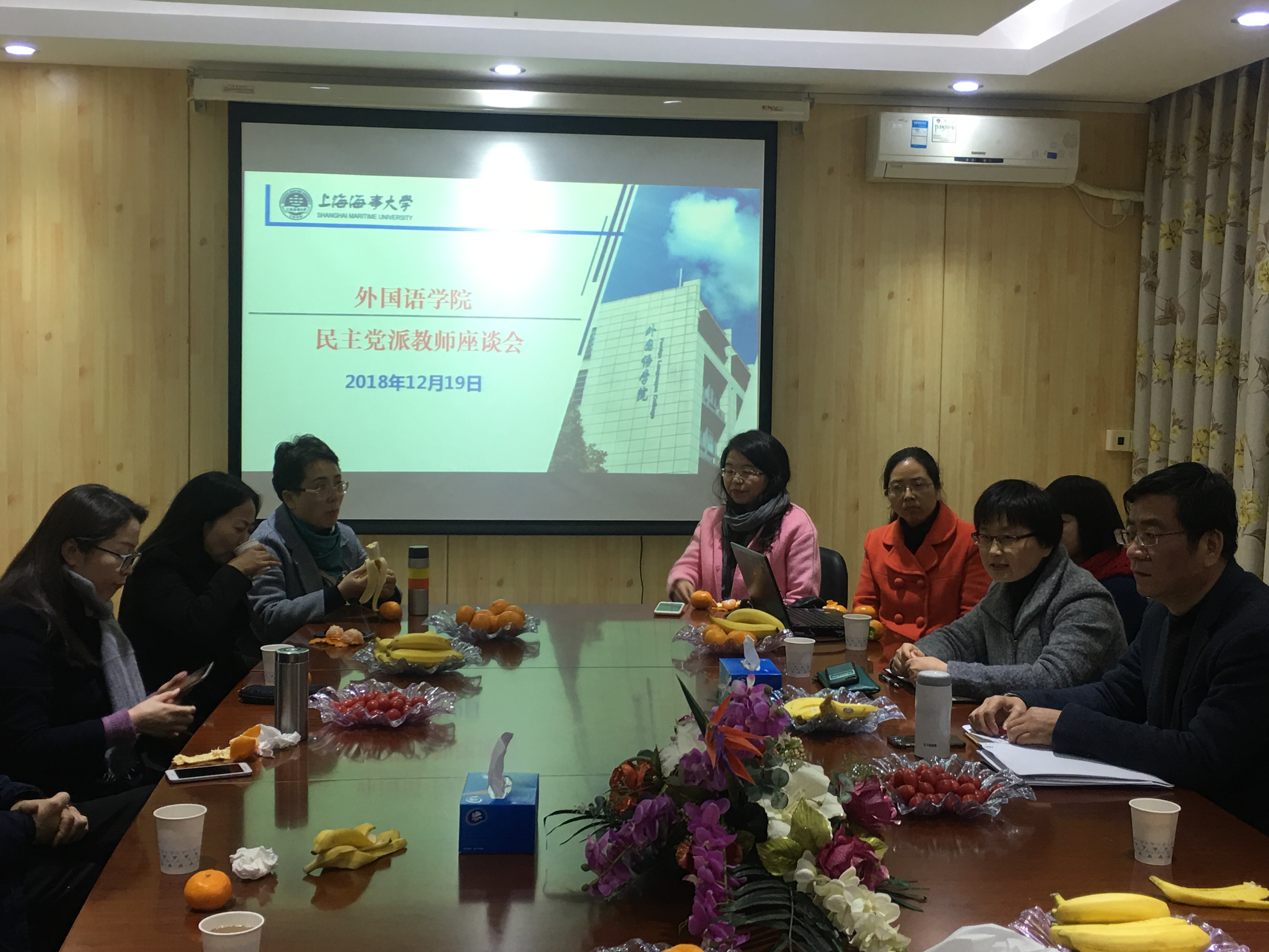 1219日下午,外国语学院民主党派教师代表座谈会于外语楼515室举行,院党委书记朱耀斌、副书记钱敏芳出席,学院各民主党派教师代表参加了本次座谈会。