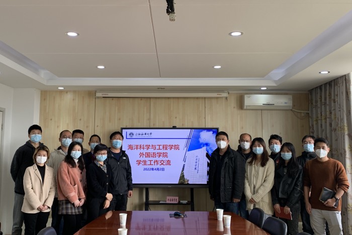On the morning of April 2, Shi Danda, Dean of the College of Ocean Science and Engineering, and Dong Chaoqun, Deputy Secretary of the Party Committee, led a team of academic staff to visit the College of Foreign Languages to carry out work exchange, and Li Pinyou, Secretary of the Party Committee of the College of Foreign Languages, Qian Minfang, Deputy Secretary of the Party Committee of the College of Foreign Languages, and the academic staff team of the College attended the exchange.