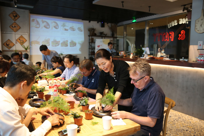 Dr. Kim Guisun, the public landscape expert of Seoul Municipal Government of Korea and deputy general manager of Shanghai Hughalin Environmental Technology Co. She introduced the knowledge of micro bonsai from three aspects: taking materials, shaping and potting. Attendees performed DIY production of micro bonsai.