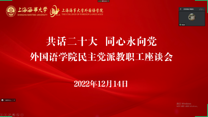 In order to conscientiously study and implement the requirements of the report of the 20th CPC National Congress on consolidating and developing the broadest patriotic united front, as well as to promote communication among teachers of various parties and further promote the development of the College, the College of Foreign Languages held a seminar for the staff of democratic parties on December 14 with the theme of Talking about the 20th CPC National Congress and always being committed to the Party. Li Pingyou, Secretary of the Party Committee, Zhang Yan, President of the College, members of the Party and Government leadership team, and representatives of the faculty and staff of the democratic parties attended the seminar.