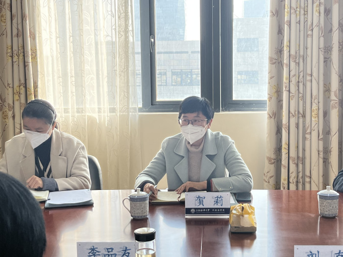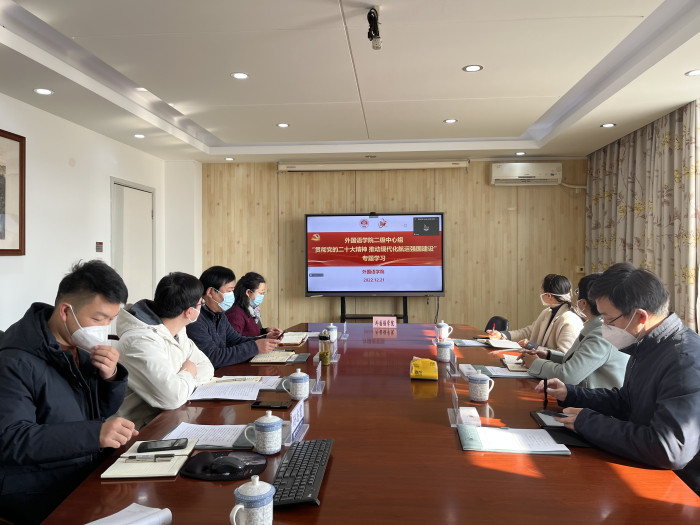 In order to better study and publicize the spirit of the 20th CPC National Congress and promote the high-quality development of various undertakings of the College of Foreign Languages in the new era, the Party Committee of the College of Foreign Languages held a special study session of the second-level central group with the theme of Implementing the spirit of the 20th CPC National Congress and promoting the construction of a modern shipping power in the afternoon of December 21. He Li, deputy secretary of the Party Committee of the university, Yin Ming, head of the propaganda department of the Party Committee, head of the teacher work department of the Party Committee and director of the personnel department, and Chen Li, head of the comprehensive section of the propaganda department, visited the meeting to observe and give guidance.