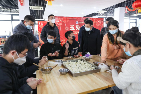 暖心辞旧岁,玉兔迎新春,1月21日,“玉兔呈祥 师生游园会”新春活动在临港校区顺利举办。校党委书记宋宝儒,校党委副书记、副校长李志鹏,学生处处长张道兵,后勤中心党总支书记梁亮,保卫处处长唐建新,外国语学院院长张滟,商船学院党委副书记高涛,信息工程学院党委副书记孙冬等来到活动现场,与留校师生同乐,并送上新春祝福。