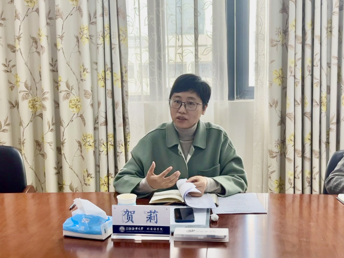 He Li fully affirmed the efforts and progress of the College of Foreign Languages in the construction of curriculum thinking and politics. She asked that the overall promotion of curriculum thinking politics should be implemented to cultivate the new generation of the times and to implement the quality of student training, both of which should be further clarified from the top-level design program. To strengthen the understanding of curriculum thinking politics, the relationship between curriculum and thinking politics is the relationship between soup and salt, not the relationship between water and oil. To improve the quality of curriculum thinking and politics, we must follow up the study of the Party's theoretical innovation and work from the theoretical source. There should be specific hard measures such as scientific research projects, teaching and research projects, and teaching reform projects to encourage teachers to form organized teaching and organized scientific research, and to create a foreign language course Civics teaching system with maritime characteristics.