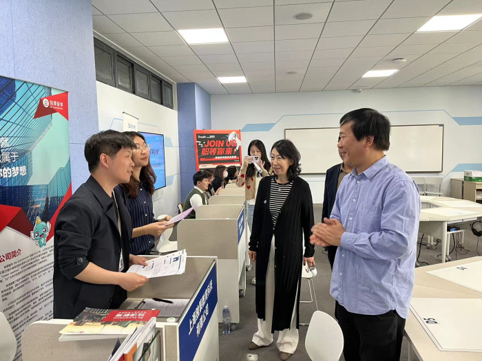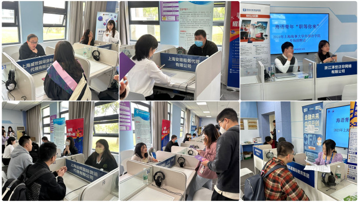The job fair invited Shanghai Anshun Shipping Agency Co. Ltd., Shanghai Gorton Education Technology Co., Ltd., Daughtry (Shanghai) Trade Co., Ltd., New Way International Education Group, Zhejiang Zeshi Pan African Network Co. More than 300 students participated in the job fair, including students from English, Japanese and related majors from other colleges.