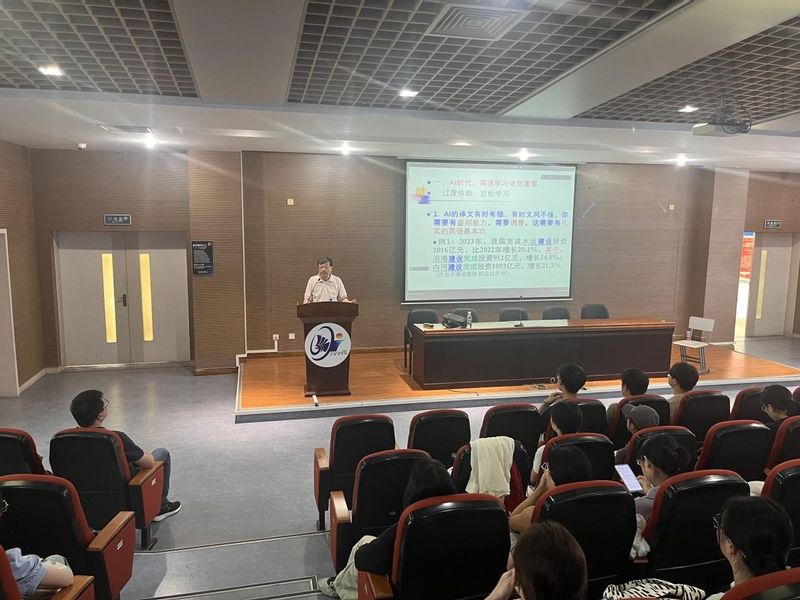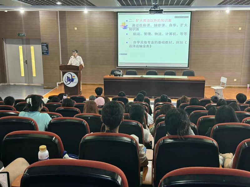 王大伟教授表示,同学们在AI时代更要努力学习,抓住机遇,努力提升自己的英语水平,做人工智能无法完成的工作,脑中切忌产生躺平的想法,转而对人工智能过度依赖。他指出作为新时代的外语人才,单单有外语还是不够,同学们需要扩大自己的知识面,通过辅修、旁听和自学等方式积累经济领域、数学领域、法律领域、计算机领域的知识。他重点强调了海事大学独树一帜的特色——航运领域,指出海事大学的优势就在航运领域,海事特色是我校的一张王牌,如果能够将外语和航运相结合,则未来必定大有作为。