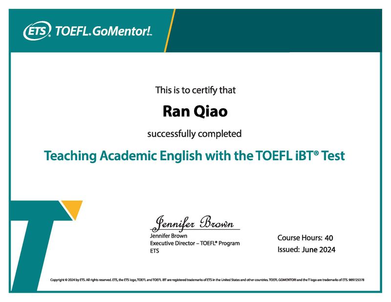 Ran Qiao老师:毕业于西安交通大学英语专业,二十余年英语授课经验,指导学生多次在各类全国赛事中获奖,受到学生一致好评。授课认真敬业,尤其擅长听说教学,善于在沉浸式教学模式中帮助学生获得提高。