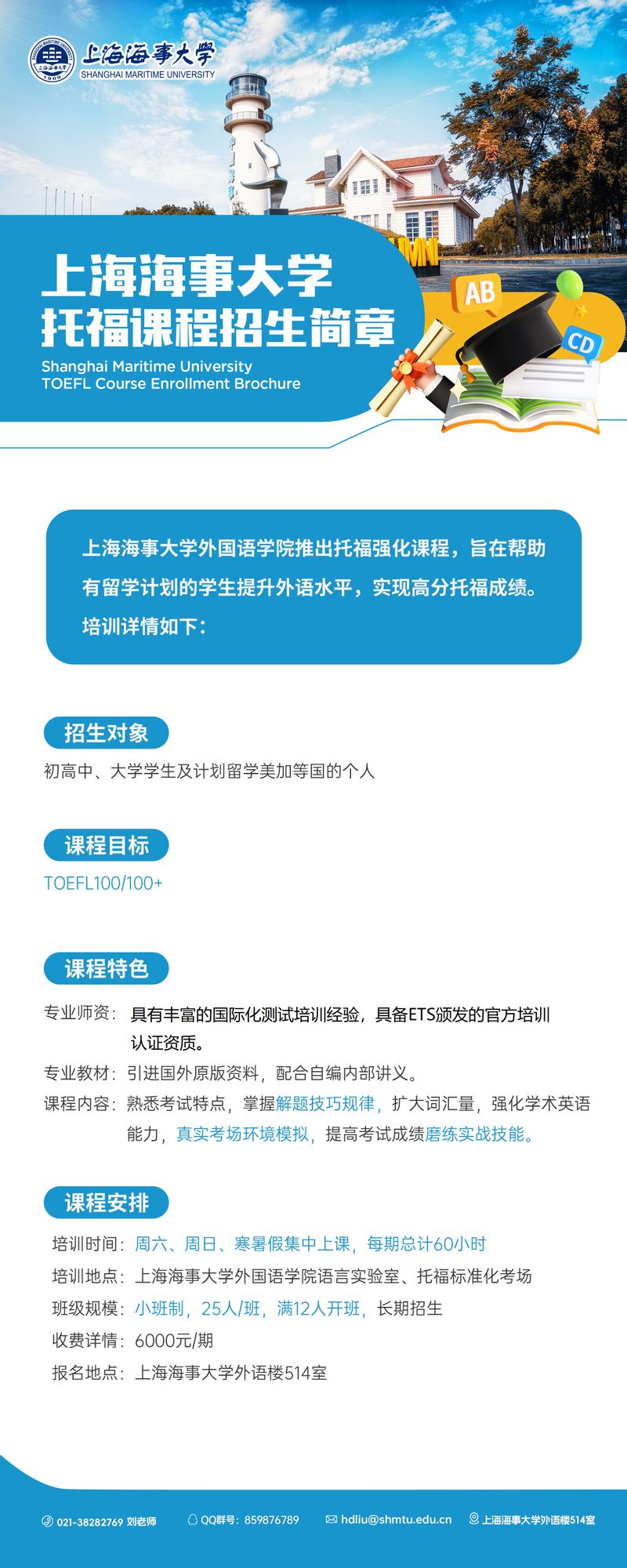 加入我们,让每一次努力都精准高效,让留学之路因你而精彩!上海海事大学外国语学院托福秋季周末班,期待与你共同开启留学新篇章!