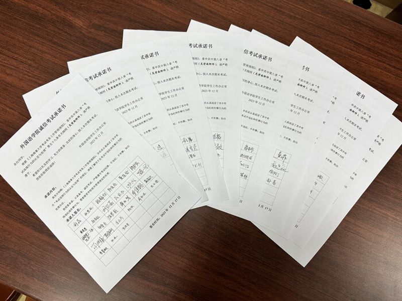 同时,学院组织全体本科生开展了“诚信考试签名活动”,组织同学们签署《外国语学院诚信考试承诺书》,号召学生通过自我承诺、自我监督,共同营造诚实守信的良好考风。