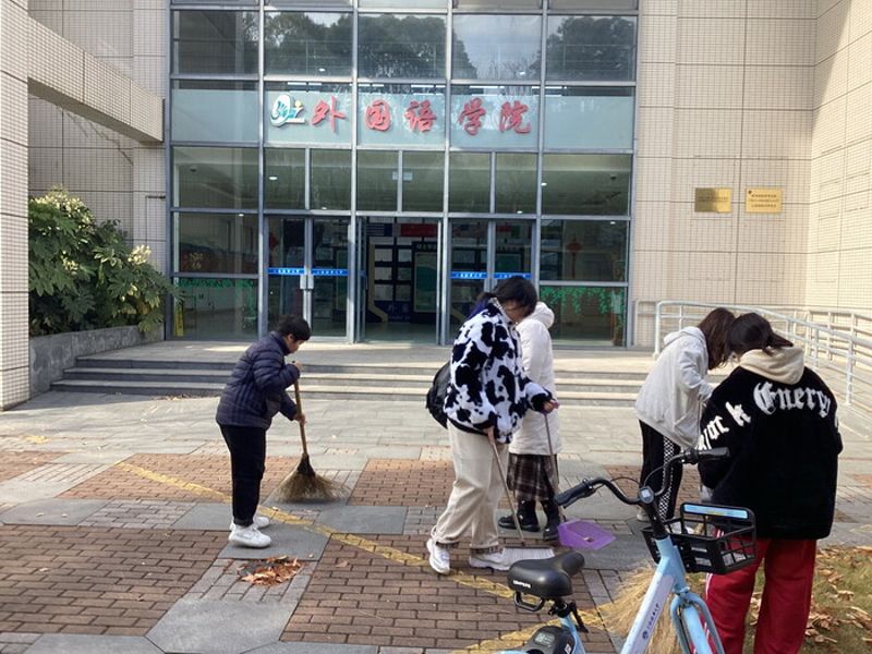 活动当天,我院师生积极参与,纷纷以实际行动践行感恩精神。志愿者们不畏严寒,准时准点到达外国语学院楼下帮助清扫楼前落叶、整理停放的自行车辆,部分志愿者在楼内帮助清理楼内地面,清洁美化了校园环境。
