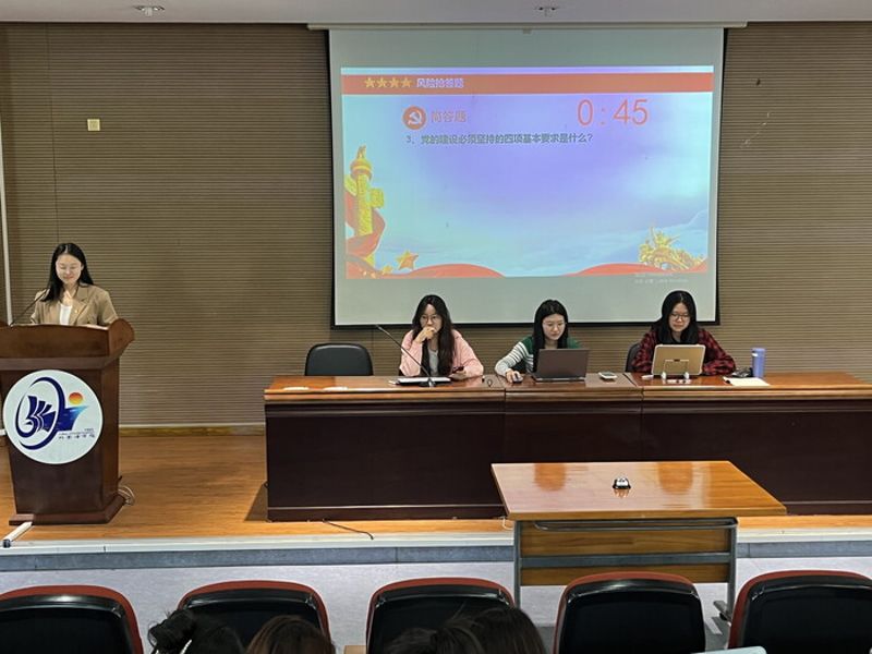 为增强师生党员对党的历史、党务工作和党纪条例的了解,提升党员的政治素养和纪律意识,5月8日下午,外国语学院于外语楼报告厅举办了一场主题为“学习党史、掌握党务、严守党纪”的知识竞赛。外国语学院党委书记李品友,科研副院长、教工第一党支部书记蒋哲杰,团委书记孙志宽,兼职辅导员、党务助理祝绍书出席活动。本次活动由外国语学院党委主办,学院教工第一党支部联合2023级本科生党支部承办。活动吸引了来自不同年级和专业的学生党员、入党积极分子以及教师党员的积极参与。