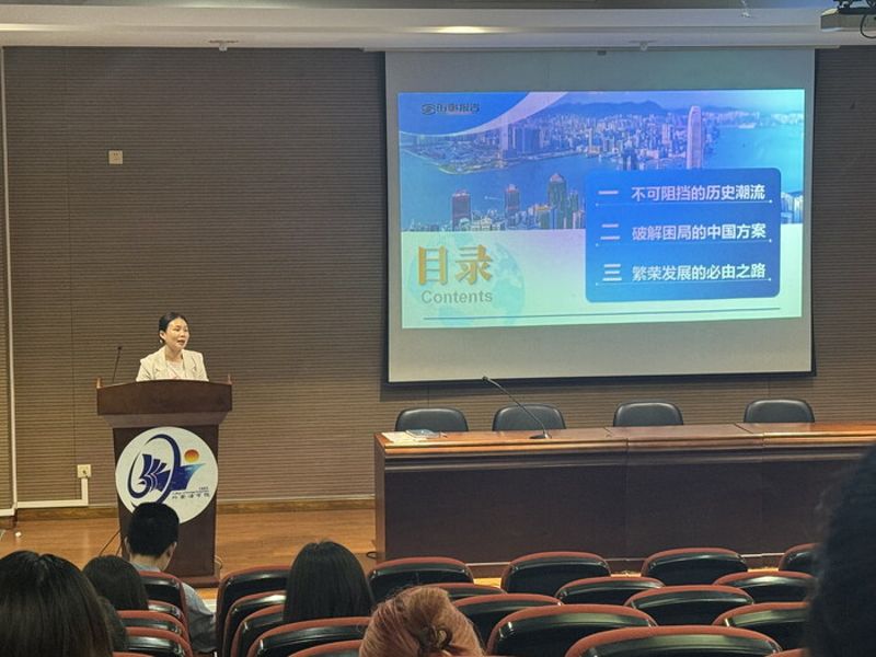恒姗姗老师详细阐述了经济全球化的内涵及其对世界经济发展的深远影响,为同学们讲解了如今局势下经济全球化的趋势所向和特点贡献,介绍了中国在此情势下作出的相应策略与方案,提高了同学们在全球局势下的政治视野和大局观。