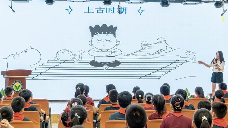 在第十四个世界海员日来临之际,6月24日,多语言“船”播社会实践队赴上海市长宁区天山第二小学进行多语言航运文化的传播,实践队周佳彧和秦思雨以《中国航运文化的传承与发展》为主题进行讲解。