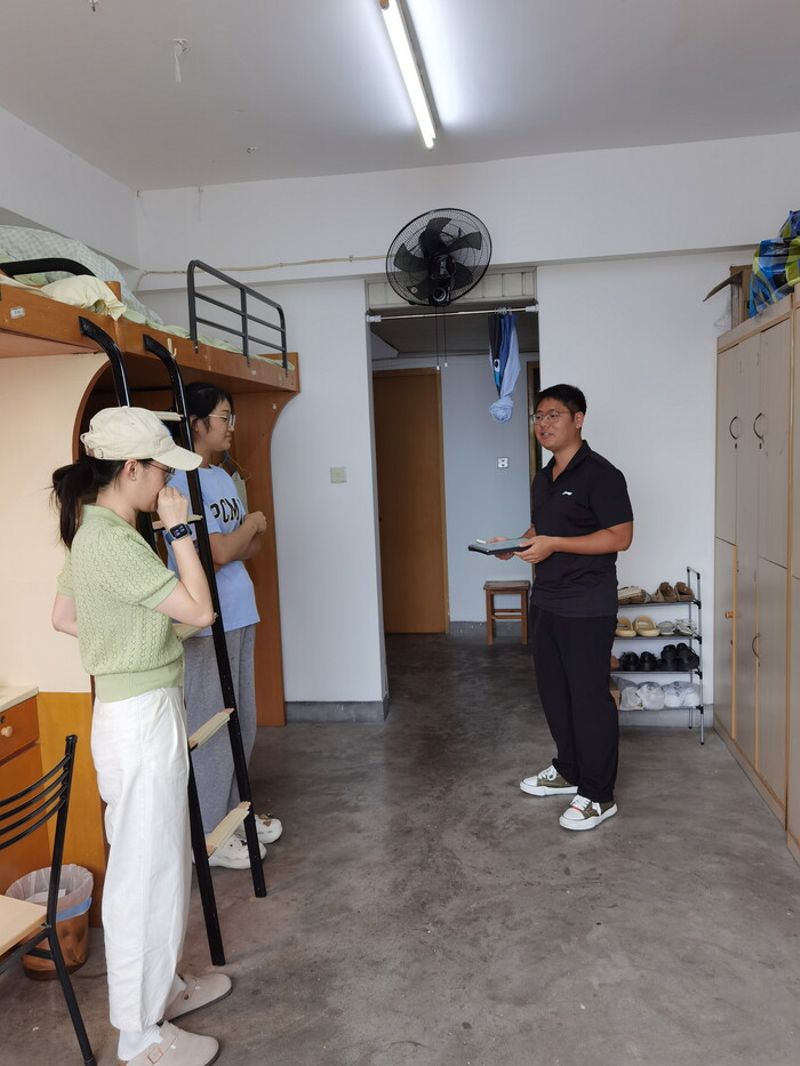 国庆假期期间,外国语学院毕业班辅导员深入走访高恒大厦学生寝室,此举旨在关心毕业生的宿舍生活情况,深入了解学生可能存在的学业困难以及就业困难,并为其提供针对性的指导。